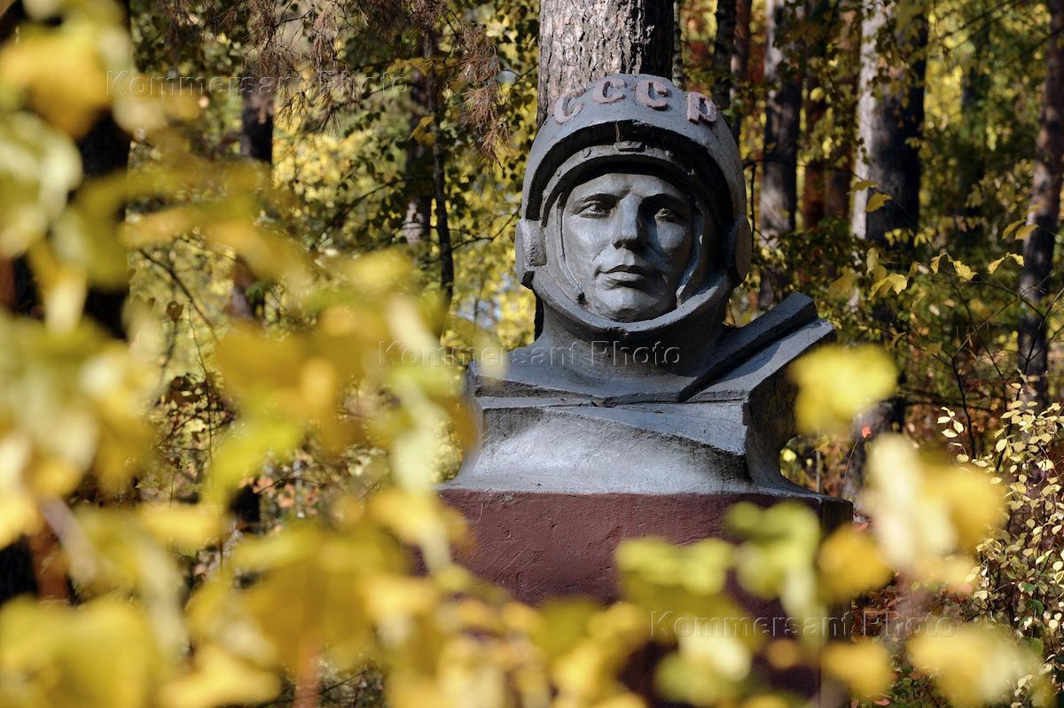 Жанровая фотография. Бюст первому космонавту Ю.Гагарину в парке.