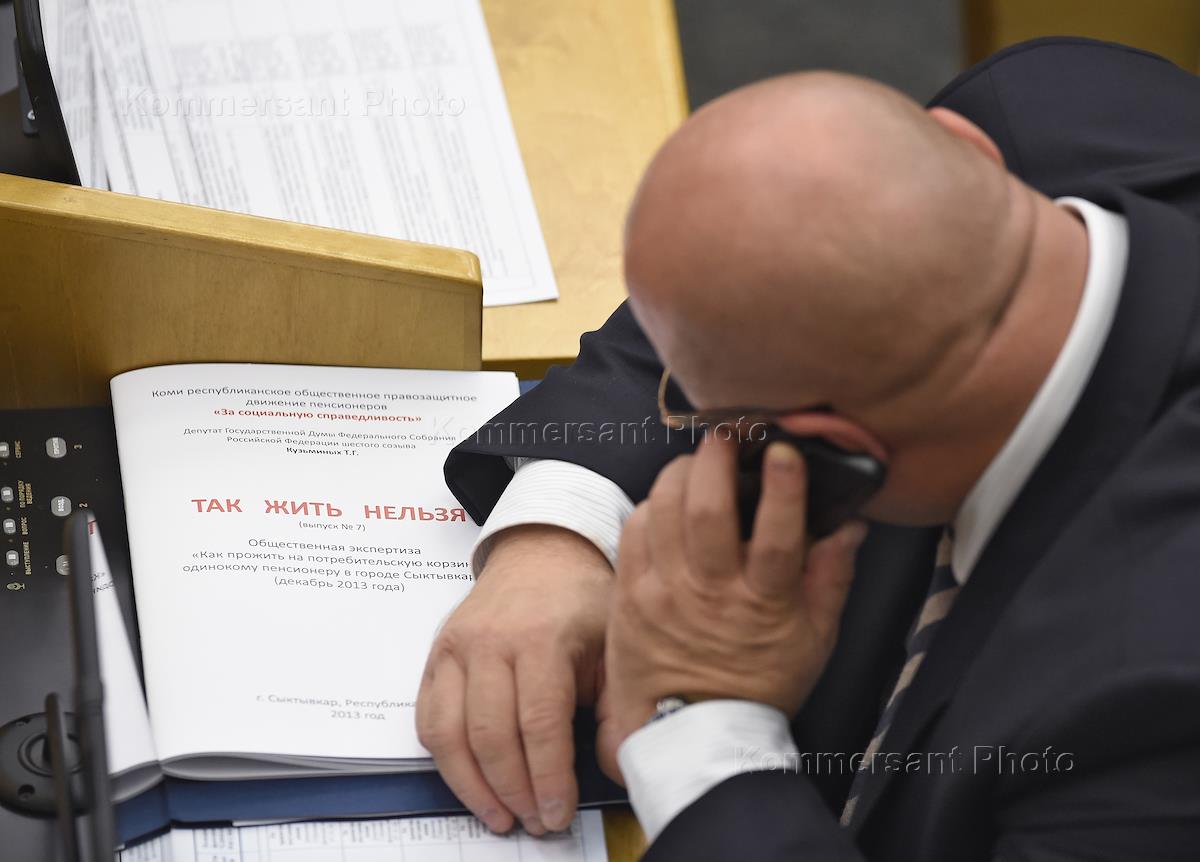 Член комитета Государственной думы России по делам общественных объединений и религиозных организаций Владимир Бурматов на пленарном заседании Госдумы России.