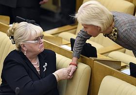 Заместитель председателя комитета Государственной думы России по аграрным вопросам Надежда Школкина (справа) на пленарном заседании Госдумы.