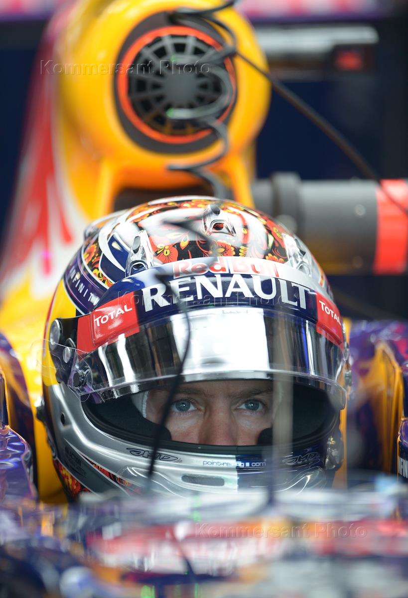 Гран-при России "Формулы-1" в Сочи. Гонщик команды "Ред Булл Рейсинг" Себастьян Феттель во время свободных заездов на российском этапе чемпионата мира по кольцевым автогонкам в классе "Формула-1".