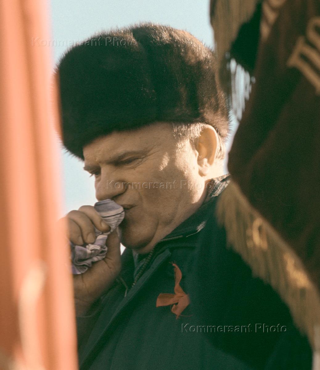 Leader of the Russian Communist Party (KPRF) Gennady Zyuganov (left) and a prominent member of the State Duma Communist faction Victor Ilyukhin (right) take part in a leftist rally held to mark the Fatherland Defender's Day (February 23).