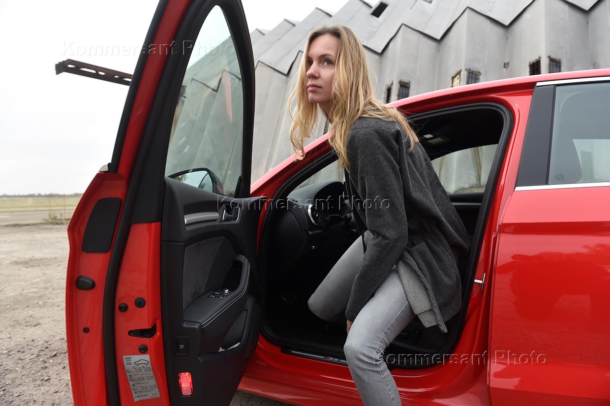 Test drive of sedan Audi S3 at a target ground in Myachkovo.