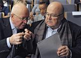 Заседание организационного комитета по проведению в России Года культуры прошло в здании министерства культуры России. Председатель Союза театральных деятелей России Александр Калягин (справа) перед началом заседания.