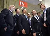 III Московский Международный форум инновационного развития "Открытые инновации". Совладелец группы "Ренова", президент фонда "Сколково" Виктор Вексельберг (слева), премьер Госсовета КНР Ли Кэцян (третий слева) и председатель правительства России Дмитрий Меведев (третий справа) на выставке инновационных технологий. Выставка прошла в рамках форума в технополисе "Москва".