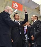 III Московский Международный форум инновационного развития "Открытые инновации". Слева направо: совладелец группы "Ренова", президент фонда "Сколково" Виктор Вексельберг, премьер Госсовета КНР Ли Кэцян и председатель правительства России Дмитрий Меведев на выставке инновационных технологий. Выставка прошла в рамках форума в технополисе "Москва".