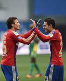 СОГАЗ-Чемпионат России по футболу 2014/15. 10-й тур. Матч между командами ЦСКА (Москва) - "Кубань" (Краснодар) на стадионе "Арена Химки". Слева направо: футболисты Зоран Тошич, Ахмед Муса, Георгий Миланов и Георгий Щенников во время матча.