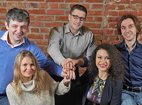 Стартап "Нетология групп". Основатели проект "Нетология" Максим Спиридонов (в центре), Юлия Спиридонова-Микеда (вторая справа), Юлия Завдовьва (вторая слева), Алексей Половинкин (слева) и Максим Древаль (справа).