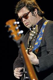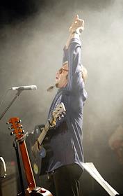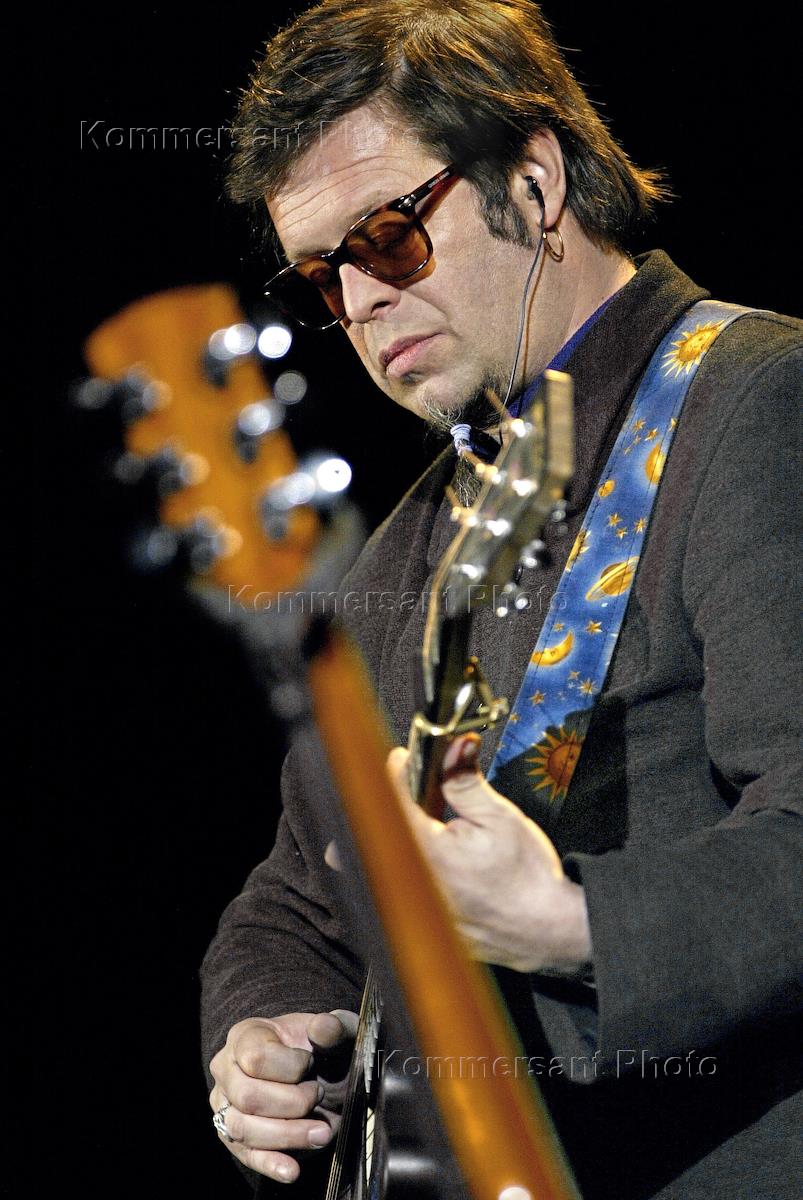 Leader of the "Aquarium" band Boris Grebenschikov performs during the concert that was held in the Chekhov Moscow Art Academic Theatre.