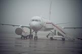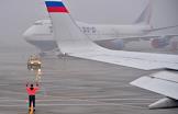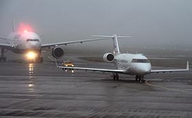 Туман во Внуково-2. Самолеты на взлетной полосе.