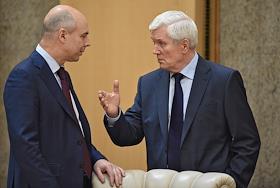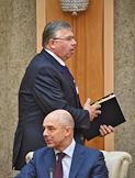 Рабочая поездка председателя правительства Дмитрия Медведева в Минск. Министр финансов России Антон Силуанов (слева) и посол России в Республике Беларусь Александр Суриков (справа) на заседании Совета министров Союзного государства.
