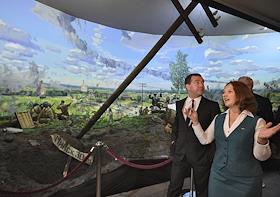 Рабочая поездка председателя правительства Дмитрия Медведева в Минск. Председатель правительства России Дмитрий Медведев (слева) во время посещения Белорусского государственного музея истории Великой Отечественной войны.