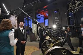 очая поездка председателя правительства Дмитрия Медведева в Минск. Председатель правительства России Дмитрий Медведев (второй слева) во время посещения Белорусского государственного музея истории Великой Отечественной войны.