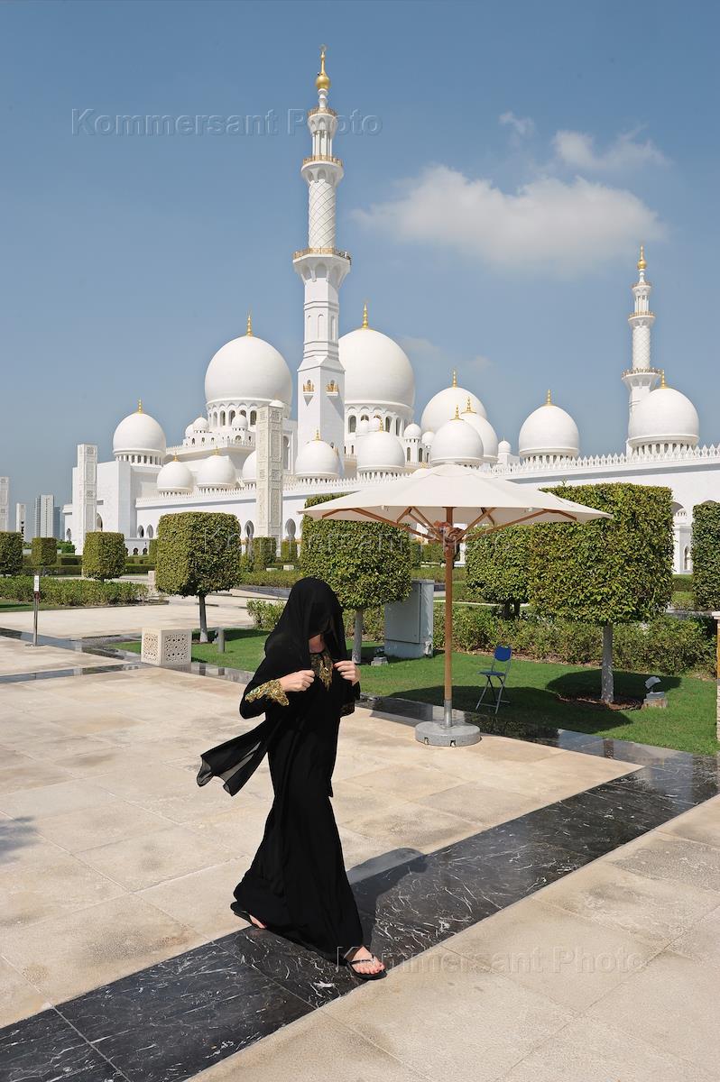 Виды Абу-Даби. Туристы в мечети шейха Заеда.