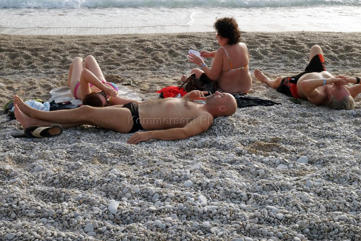 Турция. Жанровая фотография. Отдыхающие на пляже Черного моря.