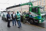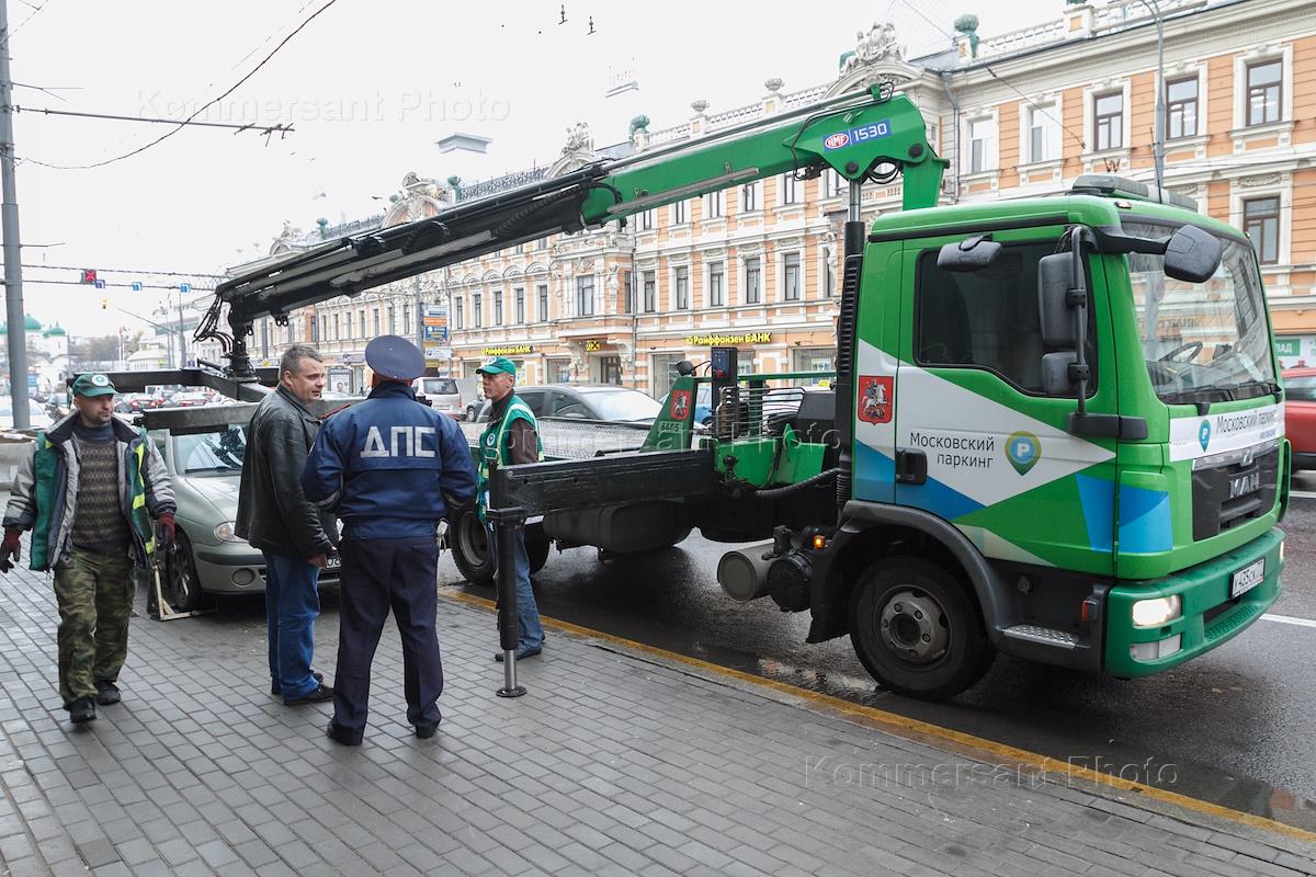 Жанровая фотография. Эвакуация неправильно припаркованного автомобиля с тротуара на Проспекте Мира.