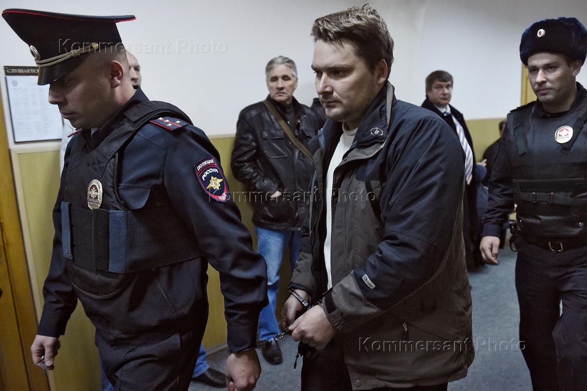 Flying control officer of the 'Vnukovo' airfield service Alexander Kruglov, suspected regarding the criminal case about the Falcon 50 plane crash in the 'Vnikovo-3' airport, is before the beginning of the sitting in Basmanny district court.