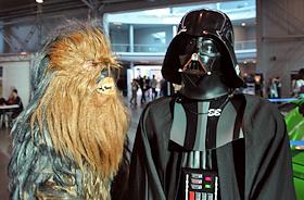 Восьмой ежегодный фестиваль популярной культуры AVA Expo 2014 прошел в Выставочном комплексе "Ленэкспо". Крупнейший в России конкурс косплея - участники которого детально воссоздают костюмы и грим персонажей фильмов, комиксов или игр. Участники конкурса в костюмах Чубаки и Дарта Вейдера - персонажей фильма "Звездные войны".