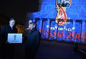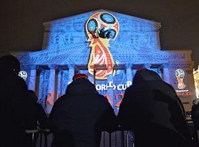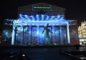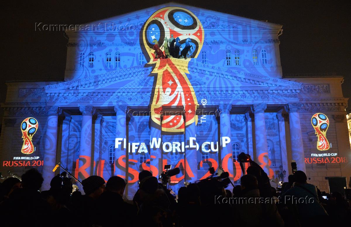 Представление официальной эмблему Чемпионата мира по футболу FIFA 2018 года оргкомитетом «Россия-2018». Проекция на здание Большого театра. Эмблему ЧМ-2018 представят Йозеф Блаттер и генеральный секретарь организации Жером Вальке, в церемонии также примут участие министр спорта РФ Виталий Мутко и чемпион мира 2006 года Фабио Каннаваро.