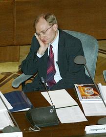 Заместитель министра экономического развития и торговли России Михаил Дмитриев во время совместного заседания коллегий Минэкономразвития и МВД России. Заседание состоялось в здании Российской Академии наук (РАН).