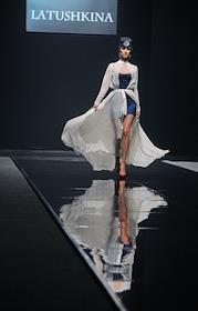 Неделя моды в Москве "Сделано в России". Показ коллекции весенне-летней коллекции Юлии Латушкиной в Гостином Дворе.