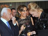 Слева направо: президент Московского международного дома музыки Владимир Спиваков, телеведущая Сати Спивакова и владелица галерее RuArt Марианна Сардарова на торжественном ужине, посвященный столетию винтажа Moet&Chandon 1914 года и аукцион в поддержку Международного благотворительного фонда Владимира Спивакова. Ужин прошел в ресторане Les Mens par Pierre Gagnaire.