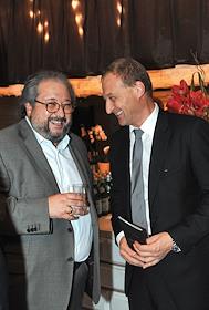 Председатель совета директоров инвестиционной группы "Открытие" Борис Минц (слева) и президент корпорации "Баркли" Леонид Казинец (справа) на торжественном ужине, посвященный столетию винтажа Moet&Chandon 1914 года и аукцион в поддержку Международного благотворительного фонда Владимира Спивакова. Ужин прошел в ресторане Les Mens par Pierre Gagnaire.