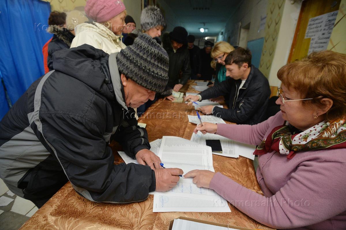 Выборы в органы власти самопровозглашенной Луганской Народной Республики (ЛНР). Голосование на избирательном участке.