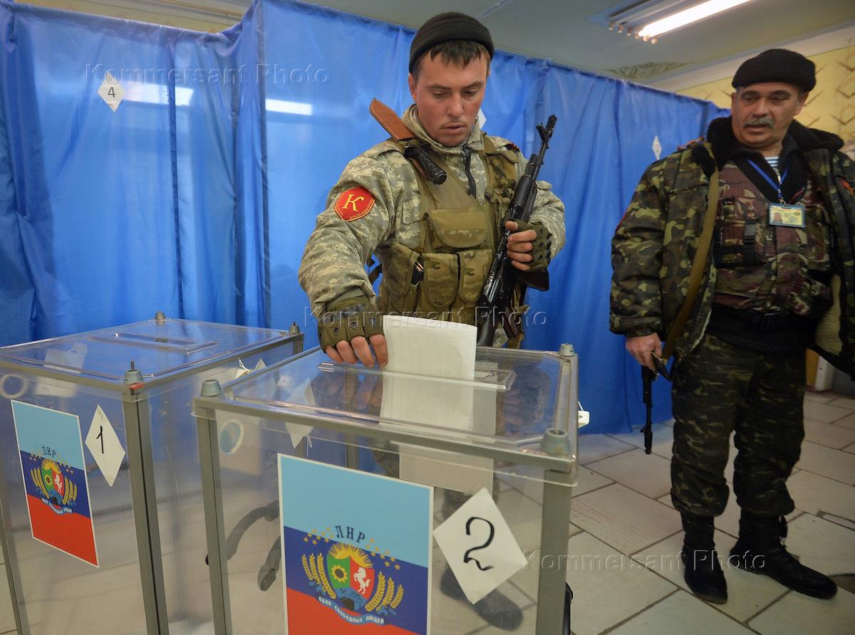 Выборы в органы власти самопровозглашенной Луганской Народной Республики (ЛНР). Голосование на избирательном участке.