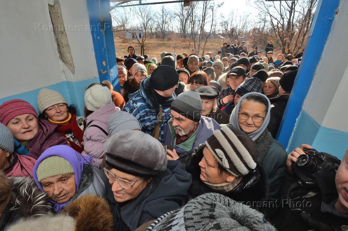 Выборы в органы власти самопровозглашенной Луганской Народной Республики (ЛНР). Очередь на избирательном участке.
