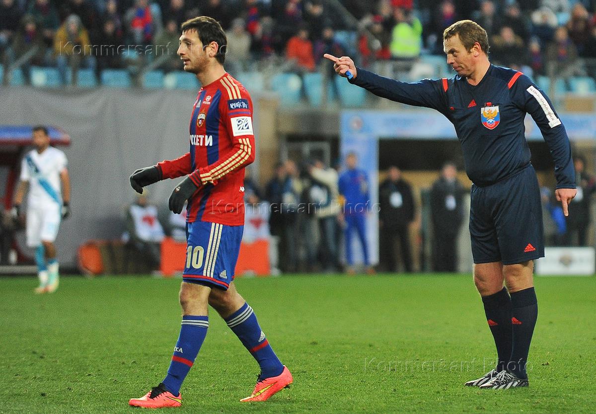 СОГАЗ - Чемпионат России по футболу 2014/15. Премьер-лига. 12-й тур. Матч между командами ЦСКА (Москва) - "Зенит" (Санкт-Петербург) прошел на стадионе "Арена Химки". Футболист Алан Дзагоев (слева) во время матча.