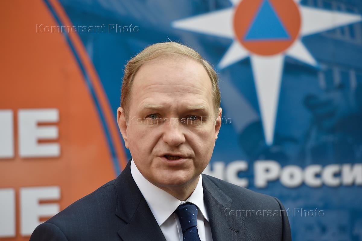 Учения подразделений МЧС России, связанные с тактико-специальной отработкой чрезвычайных ситуаций прошли в Сочи. Первый заместитель министра МЧС России Сергей Шляков (справа) во время учений.