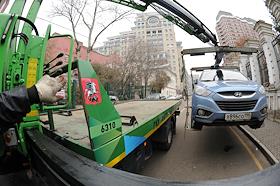 Жанровая фотография. Эвакуация неправильно припаркованного автомобиля на улице Большая Якиманка.