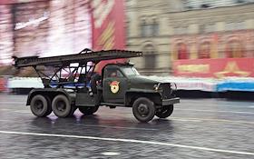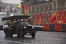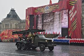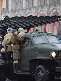 Торжественный марш, посвященный легендарному параду 7 ноября 1941 года на Красной площади. Военная техника на Красной площади после марша.