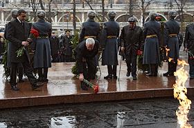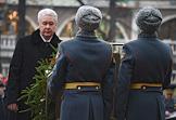 Церемония возложения венков мэром Москвы Сергеем Собяниным к Могиле Неизвестного Солдата в Александровском саду в годовщину исторического парада на Красной площади 7 ноября 1941 года.