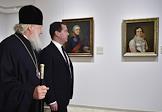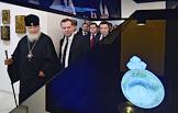 Патриарх Московский и всея Руси Кирилл (слева) и председатель правительства России Дмитрий Медведев (справа) осмотрели экспозицию музейно-выставочного комплекса "Новый Иерусалим" во время посещения Воскресенского Ново-Иерусалимского ставропигиального мужского монастыря.