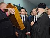Председатель совета директоров ОАО "Газпром" Виктор Зубков (слева), председатель правительства России Дмитрий Медведев (третий слева), Патриарх Московский и всея Руси Кирилл (второй справа) и губернатор Московской области Андрей Воробьев (справа) осмотрели экспозицию музейно-выставочного комплекса "Новый Иерусалим" во время посещения Воскресенского Ново-Иерусалимского ставропигиального мужского монастыря.