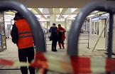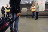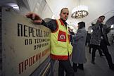Закрытие станций Замоскворецкой и Сокольнической линии метро для завершения ремонта путевой инфраструктуры. Пассажиры и сотрудник московского метрополитена в метро.