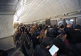 Закрытие станций Замоскворецкой и Сокольнической линии метро для завершения ремонта путевой инфраструктуры. Пассажиры в метро.