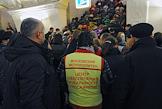 Закрытие станций Замоскворецкой и Сокольнической линии метро для завершения ремонта путевой инфраструктуры. Сотрудники метрополитена в метро.