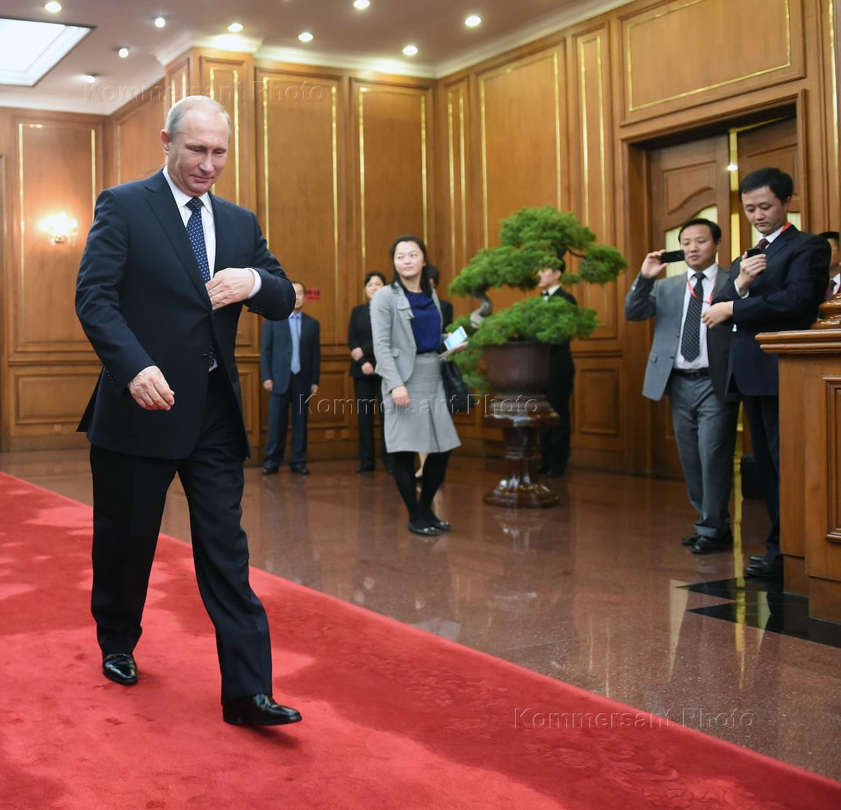 Визит президента России Владимира Путина в Китай. Президент России Владимир Путин перед началом рабочего обеда от имени председателя КНР Си Цзиньпина в честь президента России Владимира Путина.