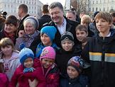 Президент Украины Петр Порошенко (в центре) во время участия в общей Молитве за детей-сирот, в рамках проведения в Украине Всеукраинского дня молитвы за сирот.
