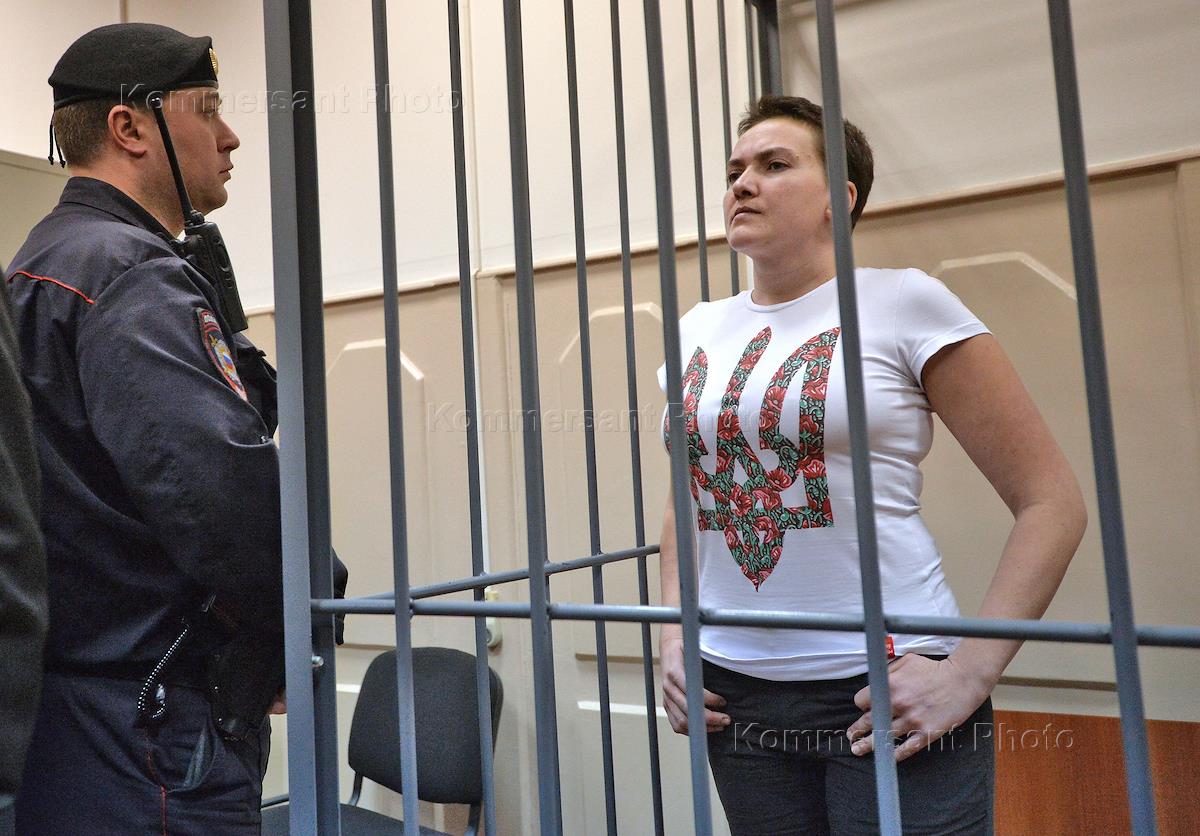 Украинская летчица Надежда Савченко (в центре) во время слушаний по жалобе на решение следователя, направившего ее на стационарную психиатрическую экспертизу.