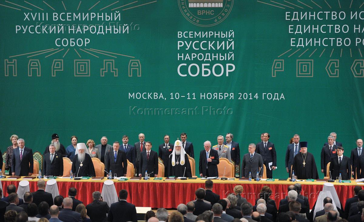 Открытие XVIII Всемирного Русского Народного Собора (ВРНС) по теме «Единство истории, единство народа, единство России» под председательством Главы Собора, Святейшего Патриарха Московского и всея Руси Кирилла в зале церковных Соборов Храма Христа Спасителя.