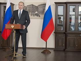 Рабочая поездка президента России Владимира Путина во Владивосток. Президент России Владимир Путин перед видеоконференцией в режиме которой он дал команду на запуск последнего из десяти гидроагрегатов Саяно-Шушенской ГЭС, пострадавших во время аварии 2009 года.