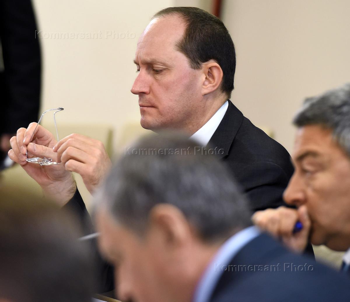 Рабочая поездка президента России Владимира Путина во Владивосток. Губернатор Приморского края Владимир Миклушевский (слева) и помощник президента России Андрей Белоусов (справа) во время совещания по вопросу создания судостроительного комплекса на Дальнем Востоке.