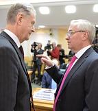 Первый заместитель председателя Совета Федерации России Александр Торшин (слева) и президент Ассоциации российских банков Гарегин Тосунян (справа) во время заседания Межрегионального банковского совета на тему "Пути повышения эффективности банковской системы России". Заседание прошло в Совете Федерации России.