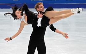 Гран-при по фигурному катанию на коньках "Кубок Ростелеком". Фигуристы из Великобритании Пенни Кумс и Николас Бакленд во время выступления в произвольной программе танцев на льду. Соревнования прошли на Малой спортивной арене (МСА) "Лужники".