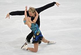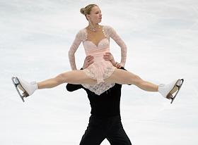 Гран-при по фигурному катанию на коньках "Кубок Ростелеком". Фигуристы из США Хэвен Денни и Брендон Фрэйзер во время выступления в произвольной программе спортивных пар. Соревнования прошли на Малой спортивной арене (МСА) "Лужники".