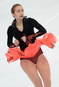 Гран-при по фигурному катанию на коньках "Кубок Ростелеком". Фигуристка из Канады Элейн Шартран во время выступления в произвольной программе женского одиночного катания. Соревнования прошли на Малой спортивной арене (МСА) "Лужники".