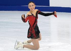 Гран-при по фигурному катанию на коньках "Кубок Ростелеком". Фигуристка из Японии Рика Хонго во время выступления в произвольной программе женского одиночного катания. Соревнования прошли на Малой спортивной арене (МСА) "Лужники".